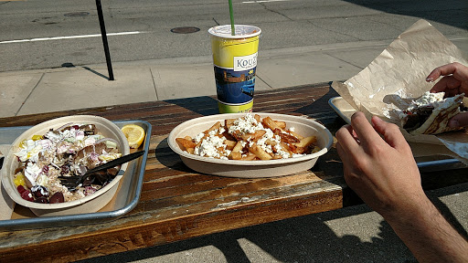 Ive heard about this place for a while and finally made a trip. KouZina took the old Zumba (now across the street) concept and made it Greek. The result is a great, straightforward approach to dining. The menu basis is built on 3 foundations: original gyro, Greek salad and Greek bowl. You then get to pick your choice of protein and toppings. I had the Greek salad with pork and it was tasty and filling. I really liked their fresh meat grill behind with chicken, gyro and pork grilling right there, talk about fresh! I also really enjoyed the baklava too. I am no expert on Greek food, but everything I ordered tasted great and thats enough for me. A great first experience and a perfect place to grab a quick dinner. Theres no much seating or ambience, so I would recommend getting the food to go. Next time I will have to try the soup that others recommend. KouZina is definitely a favorite new addition to the RO scene