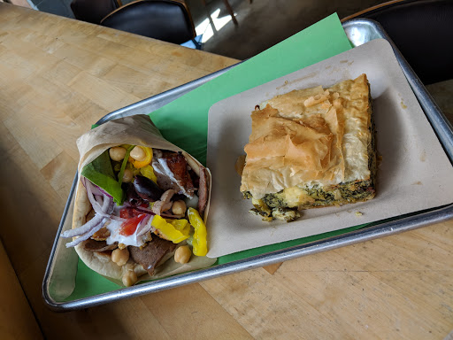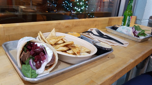 I went here twice in a row, consecutive days because the pita chips (fluffy fried dough) are so good. Theyre the best thing ever! I ordered the Bobby, which is a combo of all three meats with your choice of salad. This is a quick serve restaurant meant to turn table quickly (theres eating for maybe 20 people). You go through a line similar to Qdoba or Chiptole and tell the server what you want your bowl or wrap to have in it. I really enjoy coming here for a quick bite to eat because its fresh and those pita chips are so darn addictive. I would not spend calories on the baklava however -- it wasnt crazemazing.