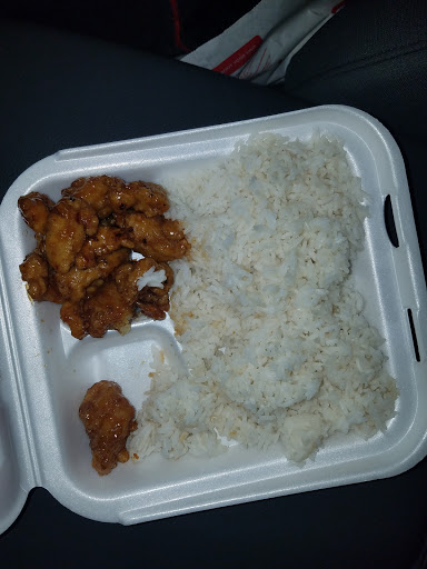 I came here today (8/12) before work. I went through the drive-thru because they had just opened (by the way, how amazing is it for PE to have a drive-thru?!?). I ordered a bowl with rice and orange chicken. The food was hot, the orange chicken was amazing but the rice was not! It had no flavor and was a little undercooked. Otherwise, I loved it! Panda Express is awesome.