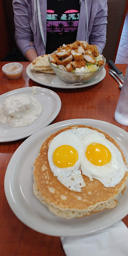 I am not sure what was wrong with our waitress. There was a special on "roast pork and dressing" i asked what it was and she annoyedly responded, "its roast pork.....and dressing" i asked if it came with potato salad and carrots like a pot roast and she shrugged. When the food arrived, before putting down my sons pancakes she told us they were burned, as a statement of fact that she had no intention of doing anything about. They indeed were burned and my son picked though them peeling off the burned areas.