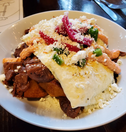 Delicious food, friendly service. We had breakfast there. My husband ate the carrot cake pancakes and local sausage. I had the WOW plate. Best food I had in Saugatuck. Would love to have the recipe for the pickled onions!