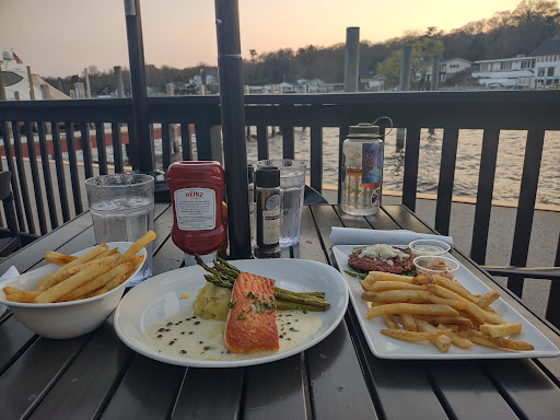 The wait was too long for the deck (40 minutes), so we elected to eat inside. They need some decor redo. The windows are so cheesy, you cannot see anything except outside diners hairpieces. People were asking for silverware and water, after their meals arrived. I was hoping that was a fluke. Not so. These waitresses were all tall, willowy blondes, who ran more than planned. They would make one trip for silverware and then 5 more to bring a water then a extra napkin for another diner. I ordered the calamari, the ceasar salad and the special sea bass, hubby ordered bruschetta then gumbo. We had some beer, it could have been colder, and hubby went to get me a napkin for drips. Still no water or service other than HI I am your waitress.. The appetizers came, with two measly asked for anchovies flaccidly plopped on top of the somewhat old, and dried out romaine lettuce. There was almost no dressing, and I had to ask for more, plus 2 more anchovies,and diced them myself. There was a sprinkling around the sides of the dish of store bought parmesan cheese. Cheesy. Cheap in other words. The calamari was nice. crisp outside and not like shoe soles inside. The sauce was bottled Italian marinara. Hey, these appetizers were expensive; shouldnt there be a specialty to it? I mean, wilted lettuce and tired sauce? Hubbys bruschetta was nice, some sliced pieces of italian bread with mixed fresh tomatoes, etc etc in a little side coleslaw dish. You cant screw that up, can you? While we were just starting with the appetizers, out came the entrees. I blinked and told the server we just got our appetizers. I told the girl to take it away till I had a chance to gag down my appetizers. She started to give me some lip and I told her I didnt want to hear the kitchens problems. I came there, and was dropping a hundred dollars for dinner, and I have to listen to a the woes of an overburdened kitchen? She said "well, the food will get dried out and overdone". This is just what I wanted to hear from a server. Isnt that special? I did wolf down the appetizers and the salad, and asked for the sea bass. It came out, and yes, it was left under the lights to shrivel and shrink and dry out. Actually, the piece of fish was wonderful. The outside crust was crispy and the inside fish was buttery and moist and yummy, not overwhelming in flavour and not a hidden bone in the small slice of fish. It was served with the most useless presentation I have ever had the acquaintance to make. Around the dish were raw small leaves of dried out spinach, not baby and not adult. More like teenage leaves. Not edible. Then, some unflavoured, sticky, typical supermarket coloured lengths of flat noodle type things. No sauce, no saving grace there. I mean, why? It would have been better to serve this bass on a smaller plate with a piece of parsley by its side with a slice of lemon. I felt bad having to throw out all that food. Hubby said it was for "presentation". I said it was chef with limited imagination and talent. We had dessert, which thank GOD, was nice. The girl came out with a platter of desserts to choose from, and they thankfully saved the meal. I got the Chocolate Eruption, a mousse cake with pieces of cheese cake in it. There was a key lime concoction, and two other cheesecake ideas. We usually do not have a dessert, but the meal was chintzy and we had room for a taste of the dessert selection. By the way, the beers could have been colder, and served with some nice iced glasses like their neighbors next door do at Coral Gables for less money. Hint hint. We tipped the waitress and made our way home. Hubby was sous chef at Grand Hotel at Macinaw and I had a restaurant in NY and cook now for love. Hope this helps.