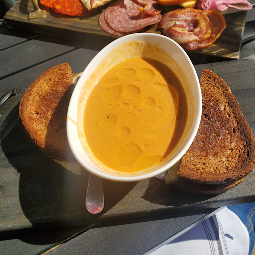 Quick, tasty sandwiches/wraps for lunch, many on house-made bread. Best part was live music, guy singing folksie oldies and playing his guitar, but we could still hear each other as we conversed in the side room, that felt like a covered porch. It was a relaxing break from the cool temps and the crowds. Outside seating was available, too.