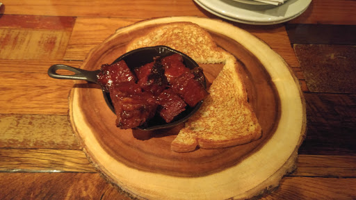 Stopped in for Dinner. We started with mini-chicken chimis for an appetizer. They were very tasty. I had 2 meat plate with pork sausage, brisket and added 1/4 rack of ribs. I selected pit beans and corn bread as sides. The sausage was pretty good, the ribs were great, and the brisket was unbelievably tender and tasty. I was quite impressed. This was the best brisket I have had in years (including traveling all through the south earlier this year - and yep that included multiple places in Texas). The beans were very tasty also and had a little kick. The corn bread was some of the best I have ever had. I was really impressed with this place. The server we had was all over getting everything we wanted all throughout our visit. I highly recommend going here, but plan for a wait most times.