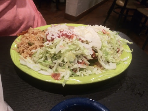 My wife and I ate lunch here. Service was timely, and they refilled our chips and salsa while we were waiting for our meal. Maybe we both chose poorly, or lunch is not on par with dinner -Im doubtful of this- but the food was really bad. My wife ordered a taco salad; it came covered in pickles? I ordered a beef burrito which amounted to rice beans and very bland ground beef, and there wasnt even hot sauce at the table to alleviate this. Within a few minutes we were both in agreement that we never need to revisit this place, which is disappointing because of all the good things weve heard about it.