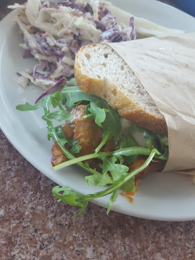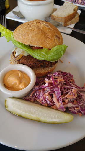 Had to wait for lunch, that I understand, but the people next to us who sat down after us and ordered after we ordered got there food first,thats OK the food was very good but thought the portion was a little wimpy for the price had tempeh burger w a yuge untrusted bun and a a,b,l,t,(avocado, bacon,,letuce,tomatoes I think even people who eat healthy like to eat