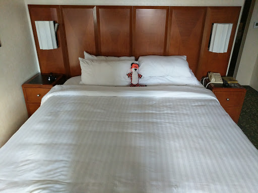 Room was not very clean and was missing bath towels, which they never brought to the room after calling down and asking for some. I ended up grabbing a bunch of hand towels from an unmanned cart in the hall as a last resort. No rooms available in this large hotel for early check-in and then later I could not extend check-out by a single hour. Woken up early by room service that I never ordered. Next time Im staying at the Courtyard across the street.
