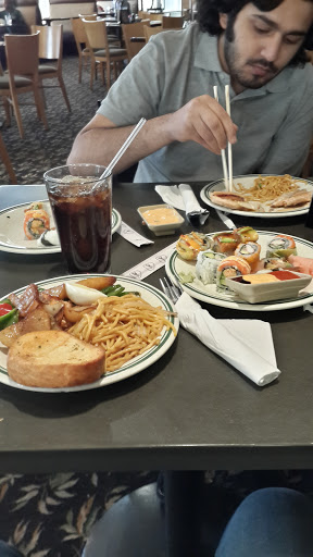 I am a road warrior who travels 100% of the time. I search out sushi buffets wherever I go. As a result, I am frequently disappointed. Many of these buffets border on inedible. This place is not one of those. There is no fishy smell anywhere - the fish is fresh. They even have good sashimi. The selection is awesome. I didnt count but they must have had 50 different types of sushi including both nigeri and rolls. I counted 12 different types of dim sum. And I didnt get close to trying the many Chinese entrees. They looked great but there was just no room. Well, I did make room for some (ok, a lot) of my favorite sesame balls. They were great. Not hard as rocks like many buffets. The service was as good as you can expect in a buffet. My drink was kept filled and empty plates were removed as necessary. My only complaint is that most of the items I tried were not labeled so I had no idea what I was trying. Bottom line is that this is one of the best sushi buffets I have ever tried. I cant wait to return.