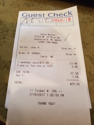 This buffet was 19.99 on the weekend that I went with my husband and our two friends. We live up north so we were impressed with the variety and quantity of food! They had a wide selection of sushi, Chinese food, salad and some American stuff (pizza) as well as some interesting options such as chicken feet and octopus cooked several different ways. There was also 8 different kinds of ice cream, fruit and some cookies/cake. The staff were very attentive and everything seemed clean and the bathrooms were fine. We will definitely be going back. :)