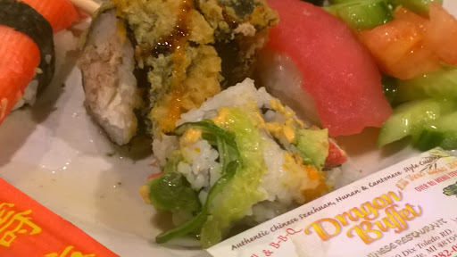 I typically shy away from buffet sushi but at Dragon Buffet it looked to good to pass up, I am so glad I tried it, since then I have been a dozen times each time different sushi selections and they have all been quite tasty!