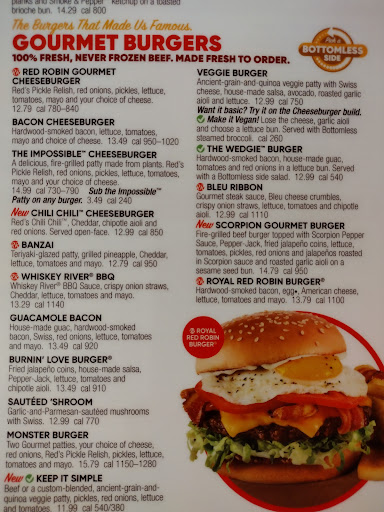 From past experience, I vowed never to return to this restaurant. I only went today because I had a gift card. This visit firmed up why I feel the way I feel about Red Robin. Way too much time passes from when youre sat at a table to when your server actually makes contact with you. The food is so-so. (Definitely not worth the price they charge for it.) This is just a bad restaurant overall. Also, if you order buffalo clucks and fries, your fries will also be buffalo as they use them to line the dish before they drizzle the buffalo sauce all over the chicken. Those were the nastiest, soggiest fries Ive ever had. Never again, Red Robin. Never again. No Flavor in the Burger Meat Ive not gone into a Red Robin in over 5 years and now I know why. A family of 3 a burger each and a drink $ 40 plus tip is out of my league. This place maybe good for families with small kids as they sung happy birthday 6 times while we were there. The burger meat has no flavor at all and the service is not the best waiting and waiting for drink refills at $ 2.39 for a Coke and $ 5.25 for a draft beer.
