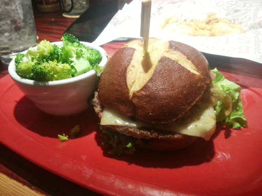 Bathrooms need heavy overhaul on remodeling, and a cleaning staff. Bathrooms were filthy, hallways were messy. Food was good so hats off to the chef but the big tavern (bigger more expensive burger) came smaller than the double tavern. Server (Alex) was rude and annoyed that she had to serve us one booth over cuz we had kids as couldnt use the table. She was slow with requests( we actually kept requests to a minimum cuz she was forgetting things and not coming to refill drinks and when we did have a request she was not happy about it. Honestly the 17% tip we left was more than she deserved but she wouldve gotten a 21% tip if she was less annoyed And did her job) never got bottomless steak fries. Had to ask for refills which took up to 10 minutes to get. And asked for side sauce 3 times and never once received it. Place was dead so she wasnt swamped... 4 tables to cover and felt like she had 15 tables to deal with. Will not use same server if we decide to give this place or more try. We are huge on customer service and we tip generously when treated with respect and we respect that she tried to hide her attitude and annoyance but it was not enough to mask it and made our small party of 4 very uncomfortable the majority of the time.