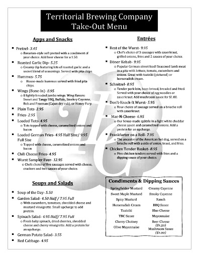 My parents and I tried this small business several months ago. We noticed a lot of old German artifacts on the walls, which we thought were quite interesting. We tried a flight of several different beers. I must say, for an American-based business, the beers were pretty close in flavor to those I tried in Germany in 2014. I think I ended up getting a full glass of the Keller Harn, a golden-colored Pils. It was lovely. In addition to the beers, I thought the sausages were delicious. I had a dill pickle and a plate of several different sausages, which were very enjoyable. I dont care what people say; Territorial Brewing Company has great beers and meals.