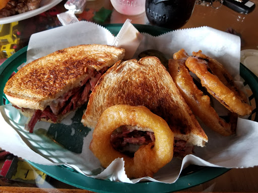 Great 1/2 pound burger...handmade patty...cooked to order...try the beef barley soup...made from prime rib Im pretty sure...