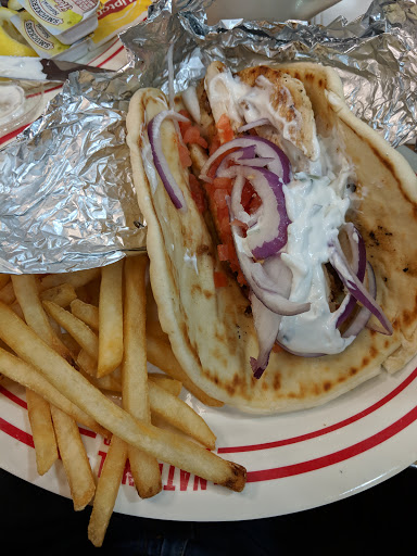 Standard National location. Threat cheap food fast. Lots of seating so even lunch rush is fast. Lot is smallish but youll find a spot. As always ask for a side of tzaziki with your Greek omelette.