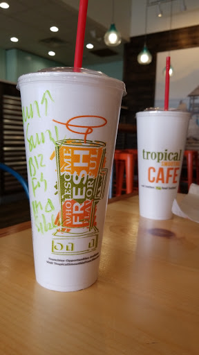 Their smoothies and food are absolutely delicious! I order online because the line always seems to be long (but that means its busy because its so tasty!). However, at this point you still have to wait in the line to pick up your order so you really arent saving that much time and the food gets cold. The inside is decorated in a very trendy way. They have a barside table to sit and eat at as well as regular tables. The staff is always friendly and kind. Not your typical teenagers who dont put any effort in their fast food jobs. They make sure everything is quality before sending it out. I think this is a great place to dine in for a first date or catching up with friends. And a fine establishment for bringing a family in to eat. Its also great for takeout! 5/5 stars to Tropical Smoothie Cafe! Youve really impressed me. ** by the way, download their app and you can pay digitally and collect a free $5 credit for every $50 spent **