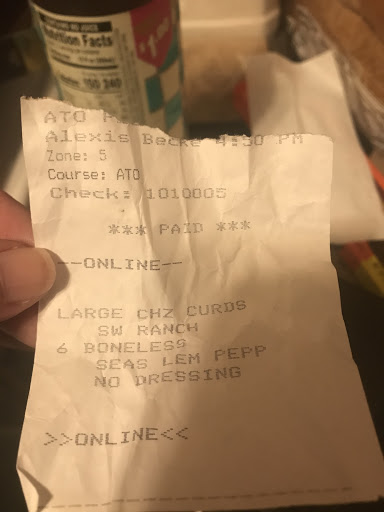 A tall skinny worker by the name of Mike had the audacity to tell me that I had not tipped him enough because my tip ($3.37) was less than a dollar under the recommended. Ive never been confronted about a tip like that ever, and I wasnt gonna break a $50 to give him an extra dollar. He should have been happy with what I gave him. Oh, and my boneless wings only had what seemed like a drop of honey barbeque.