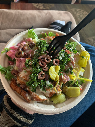 I am literally OBSESSED with Chickpea Kitchen! I eat here at least 5 days a week...literally. Their steak is to die for. I usually get a steak bowl with half rice and half cracked wheat, garlic, hot sauce, ranch, and add in my favorite veggies! But thats not all, the Chicken Lemon Rice Soup is deliciously mouth watering. Youll be begging for more and more!!!! Chickpea also makes fresh fries upon request and let me tell you...GET THEIR FRIES ON THE SIDE!! Your stomach will thank you multiple times