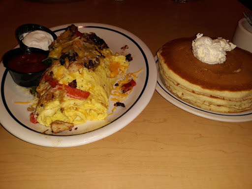 2 1/2 stars- arrived approx 9:30 am saturday morning- just in time to get an available seat- when we left 1 hour later there was a line of people waiting 2 b seated. hadnt been 2 an iHop in years- joined my brother 4 breakfast- check for 2 people was approx $22 not including tip_ 2 coffees, 1 omelette and 1 french toast. brother ordered steak omelette_ which was HUGE and looked very good_ BUT he offered me 1 bite and it had a very hard piece of gristle bone in it- almost hard enough to break a tooth- definitely unable to chew/consume. my silverware was spotty/dirty. i ordered strawberry/banana french toast. the picture made it look like fresh strawberries and banana slices- but the strawberries were in some kind of sickly sweet glaze which was spread over the french toast- i could only eat 1/2 of 1 slice. the waitress was nice. even though we had eaten less than 1/2 the food she did not offer carry out containers- we had to ask when she presented the check. i wish i had taken pictures 2 show you- but i completely 4got about these google map reviews i was contributing to.. i would not go back- i would not recommend- there r other restaurants that serve breakfast that cost less than $11 and where the food is better and the serving staff is more observant of customers needs_ IE: saw me cleaning silverware- did not offer clean silverware or extra napkin> saw all the food we did not eat but did not offer take out containers.