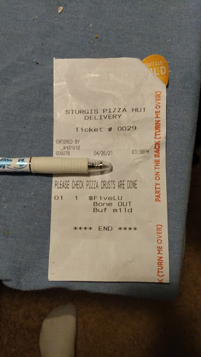 The manager at Pizza Hut in Sturgis, literally hung up in me, after he refused to give me his name. Im reporting him to Customer Service.. He is a poor representation of what good management is. And I would never want anyone else to get treated the way I did tonight. Sign, Very dissatisfied customer.