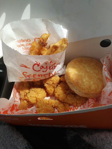 Horrible service, been going there for three weeks trying to get their new wings everytime i go their out of boneless wings. Place is horrible which sucks because i like popeyes . Their menu outside is very poor, seems like they were in a rush to put it together and didnt care what it looked like and their advertising is horrible as well . Employees were cussing overall bad place to go. Next yime i want popeyes i will NOT go yo this one .