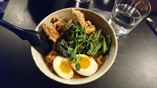 Great atmosphere and delicious food. The restaurant and the bathrooms were very clean which I appreciate. Minimalistic seating with metal stools and flat wood benches, so be prepared if your ass hurts from a 20 mile bike ride (like mine did when I went). Kinda had a samurai champloo vibe, so it was really cool