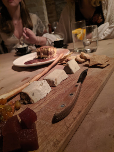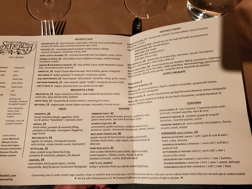 Wow!! Amazing experience at Trattoria Stella! We were seated in one of the nooks of the arches area of the restaurant, which was very cozy and private. Our waiter, Stu, was excellent! He answered our questions about the history of the asylum before the basement was turned into a restaurant. He told some great stories and helped us with our food and wine selections for the evening. He was very considerate when boxing up our food. The restaurant itself was beautiful. For something that used to be a root cellar to an insane asylum, it was really a very cool place to have dinner. We had the foie gras, duck liver pate, roasted bone marrow, mussels, and white pizza as appetizers. Everything was cooked to perfection and plated beautifully. The mussels were served in a creamy spicy sauce that I had never experienced before. There was also house-made focaccia with a delicious seasoning served for the table, and oil and vinegar for dipping. For our main entrees, there was a lamb special and a ribeye special. Between the four of us, we ordered two of the ribeyes and one of the lamb, and one of the tortelli pasta dishes. Everything looked and tasted amazing. The ribeye was served with roasted potatoes and thin-sliced crunchy mushrooms, and steamed broccoli and jalapenos. The lamb was served with potato gnocchi. We had a ton of leftovers, but Stu made sure that everything was boxed up (including what was left of the appetizers, and an extra serving of the bread) and made sure that we had everything that we needed. It was definitely worth driving the 3.5 hours for a dinner at Stella!