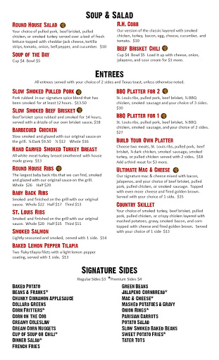 Round House is SOLID, the service is friendly and the food is a good value. Youre not likely to be disappointed. My deep and respectful apologies, however, but glowing apologists of the Round House need to explore the area more. If youre willing to travel downtown both Slows and Red Smoke offer better food and atmosphere. Zingermans in Ann Arbor has excellent BBQ as well. Downriver, however, Round House is tough to beat.The ribs are very well done and the pulled pork is also very good. The skillet jalapeño cornbread stands well above and beyond anyone in the area, including Slows, Red Smoke, and Zingermans. Skip the peach cobbler, though I may be highly biased here because Ive never found commercial peach cobbler which is even palatable compared to my mothers.