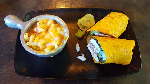 Round House BBQ has been a favorite of my wife and I for a while. By now, we are regulars since we frequent here often. The service is great and so is the food. Most of the time, I get the Round House Wrap w/ chicken and my wife gets the pulled pork sandwich. The mac n cheese is our must-have side, even at the additional cost! Usually we get lemonade, with grenadine added for a cherry twist to it. Located just north of Elizabeth Park, its location is convenient for either a lunch before a nice stroll in the park or a nice dinner after. Inside the restaurant, taking a left, youll find the bar located in a festive seating area with a tall ceiling (with painted clouds) but if you take a right toward the kitchen, youll find a quaint booth-only area that has been newly renovated with high-back booths.