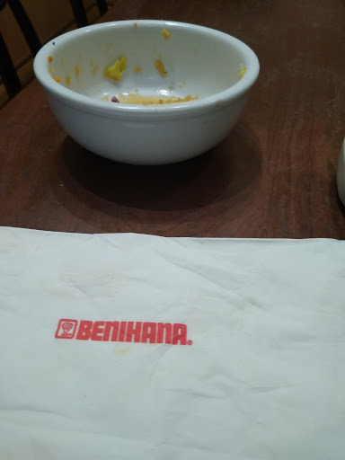 I have mixed feelings about Benihana. This was the place, my wife and I had our first date, so thats a great thing. The food is still great but i feel the restaurant has become like a mass production cookie cutter restaurant. Ive been to benihana and this particular location a number of times and it seems each visit gets shorter and shorter. What was nice about Benihana is that you could literally spend a couple hours watching your food get made, eat, and enjoy some decent conversation with strangers. This visit was about an hour; in and out. The cooks are still fantastic but it seems that they are rushed to get you in and out as quickly as possible. The food is still excellent and the price is reasonable for all you get. I had the benihana delight which included chicken and jumbo shrimp. I was disappointed that I didnt get my green tea at the end but its not a big deal. If you never been, I highly recommend the experience. If you have been, its probably better just to go to the bar, have a cocktail and get your meal to go because the experience has lost its luster from years past.