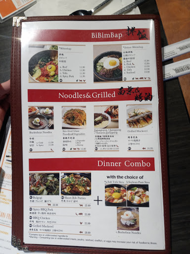 Stopped by with coworkers several times now when were in the mood for a fun post-work bite. Weve tried the bbq combos several times; you get a wide assortment of Korean side dishes, salad, soup, and a heaping portion of meat (pork and beef). You can grill it yourself using the tables grill, or the staff will assist if need be. Delicious food, full bar, big restaurant with ample seating. The price is a bit high, but if you dont mind paying for the experience and some seriously good food, its a great place to try. Most of our party had never tried Korean before, and even the picky "meat and potatoes" eaters loved it.