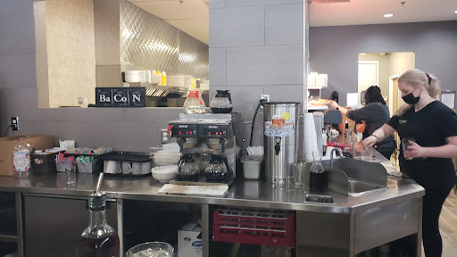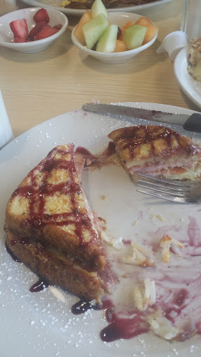 Went here based in a recommendation from a friend. The food is good and portions are nice but its not enough to cover for poor service. I went after church and to be expected it was busy. Keep in mind Im a towering figure and its impossible to look through me, pass me, around me, let alone get by me without altering your steps but somehow it happened here. I stood at the register for five minutes before anyone asked me if I had been helped. There were no less than six girls working the line as well as a gentleman who I assume was the manager sitting people. After I ordered it took another thirty minutes before I got my food. A lady who ordered a Mexican omelette with fruit and pancakes managed to eat her entire meal before I even got mine. She was slight frame and ate her food slowly. Very disappointed in the service. The staff were friendly to other people, sat them quickly and were quick to get there orders. I asked for a sec to look at the menu and immediately knew what I wanted and then had to wait an eternity for someone to take my order. The chicken cordon bleu omelette was good when I got it. Chunks of chicken and ham was a nice combination. Its hard to mess up hash Browns or pancakes and this place did not. Though theres nothing unique about either. Usually bad service and good food is a wash and I would give it three stars but this was excessive. And even though it was busy at first it did slow down and my help was still slow. Probably not going back.