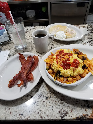 I was very pleased with the pancakes in fact Im looking forward to trying the waffle. IF I GO BACK Though here is the problem and why I gave 3 stars I had corned beef hash with eggs. The corned beef was overcooked to the point of tough and chewy, leaving it mostly inedible. The eggs appeared fried, I asked for scrambled and there is a difference, too me.