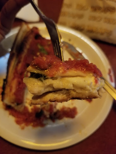 Great food. I had been to the Greek Town location and my expectations were well met. They took over an hour to make our food. The manager came to us about 45 minutes in and said that there was a mistake and they had just put the pizza in the oven (deep dish takes a lot longer to cool). She comped us with free salad and bread. I was very hungry, but the managers willingness to see what went wrong and inform us instead of covering it up was refreshing. The honesty was great to see and a wonderful managerial skill set. I applaud her and would welcome another visit. TOP NOTCH CUSTOMER SERVICE and problem solving skills!!