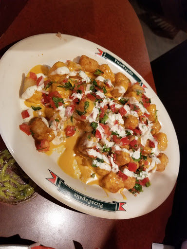 I love the pizza at PizzaPapalis! The pizza never disappoints even though you have to wait a good 35+ minutes for it. That is why you order drinks, appetizers, or salad! Like I said, pizza is awesome, appetizers are so-so and service was so-so. We ordered pops, and our glasses were empty most of the time, where good service would have them full. WE ordered the bread sticks which came with 2 sauces, marinara and cheese dipping sauce. Sauces were tasty but the bread sticks were extremely dry. Overall, I go there for their pizza.... Maybe next time I will just get a pizza carryout ;-)