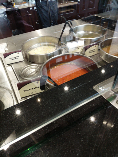 Was in there on 10-1-11, staff was friendly, service was great. Only had 1 problem and that I think the guy at the register was new and didn't listen very well. My wife ordered a salad, never got it. We wernt charged for it so thats ok. She told him 3 times she wanted the salad and when we got home it wasn't in the bag. I ordered a cup of soup and he asked me what type of bread I wanted, I explained I'm on a special diet & can't eat bread. He said ok, 2 seconds later I said I wanted to order a cup of another soup also and he asked me what type of bread I wanted. I looked and said, I just told you I can't have bread. It was kind of like I was being punked or something. Anyway, everyone else was very helpful, friendly and they let you taste any of the soups. The only bad thing I could say is they are a bit pricey. 3 cups of soup and half a sandwhich was $21 bucks. I will go back because the soup is that good and the staff is friendly. Just hope the guy at the register is a little more on his game next time.