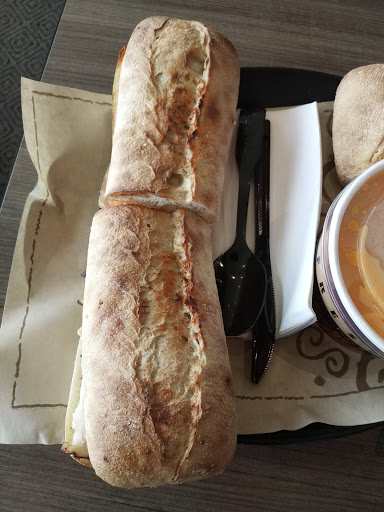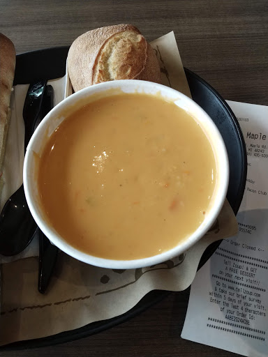 Great staff at this location. Not busy at all during lunch time on a Friday. Soup was good, but the sandwich was a little lacking. It was fine, but would just stick to the soup in the future.
