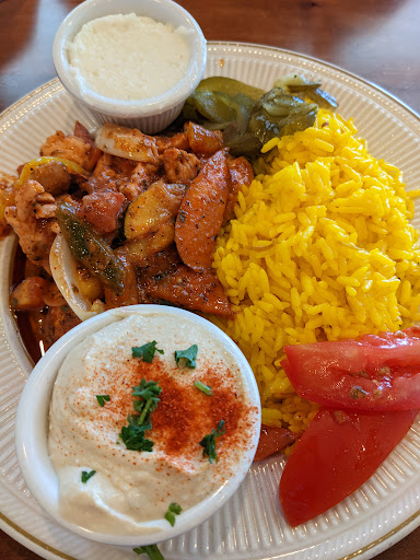Fatoosh salad was delicious. Shish Kabob was so tender and cooked just as ordered! Chicken Ghallaba was tasty and rice also. Service is great. Noticed lots of take out orders.