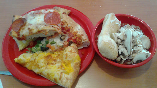 Havent been since I hosted my daughters birthday there in January on 2016. It was just OK then. Seems to have gone downhill Visited on 08/14/17 at about 6:50pm. When we walked in, there were maybe 7-9 tables with customers, the rest of the tables were empty. The pizza bar was full, usually is. Lots of the same pies, over and over, requests for the specialties take a while and they dont make those on rotation like pep or cheese pies. Sit down, the table is clean looking but sticky. Floor is too. It was back in 2016. *I think an industrial mop and bucket costs about $30 total* I head up to make a salad, everything looks ok. I start to fill my bowl. The check out girl is using one gloved hand, the other hand un-gloved to fill the stations. She is throwing the items into the containers and making a mess. Yes, she is doing this as I am reaching in for ingredients. She uses the same glove to reach in every, single container to fill each item. Eggs, olives, meats, cheese, all got touched with that one glove!! It didnt help that since she was throwing the food there, its all mixing in the wrong containers. Also, as she grabs a new one, she sets the container over the items on the bar. The meat in the back? It had at least four different containers sitting on top of it. TALK ABOUT CROSS CONTAMINATION! I leave my bowl and head back to the pizza. It was ok, nothing special, not really made with care, looks like it was thrown together in a hurry. I go to get a drink, fountain pop. Plastic coke cups, at least the first 5 I grabbed, were cracked or chipped in some way around the mouth piece of the cup! Come on!! Amazon has 6 packs of those cups for $20!! The worst part, as the busser girl is walking around with her tub, clearing the tables. She is SETTING THE DIRTY TUB ALL OVER THE TABLES, as customers are eating!!!! Once she makes it to my table and asks " Can I clear any plates for yous?" I reply " Yes. And you need to know, you shouldnt set that dirty tub on the tables where people are eating" She says "ok" and seems upset. Back when I worked in food, that would be grounds for a write up, carry the tub, set it on the SEAT if you must and always wipe up when you lift it. Simple, common sense things and it seemed like a lack of training. Bad management. I leave and am waiting outside for family to exit, I watch her set that nasty, dirty, old bus tub back on at least 4 customers tables. This owner needs to invest in some training and proper customer service skills. I know young workers are cheap but you could give them a good start by showing them to right way to do things and holding them accountable to complete whats needed each and every shift. If they cant do whats expected, plenty of workers out there that will. I wont return and dont recommend you do.
