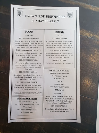 I took my girlfriend there for valentines day and it was a very unpleasant experience. It started in the morning when I tried to make a reservation and was told they dont do reservations on the weekends. Then we got to the Brown Iron Brewhouse at 3 pm, to ensure there wouldnt be a very long wait. There were about 6 tables open so we asked the waitress if we needed to seat our selves or wait and were told they had a 10 minute wait. So we sat down and waited about 15 minutes for one of the 6 open tables that were open when we got there. We then got seated. I ordered 4 different drinks of the menu and was disappointed to find that they were out of all of them. My girlfriend ordered two drinks and they did have those but she was brought the wrong drink for one of the two. Which put them at 6 drinks ordered and only one delivered. Were not the type to make a stink and most of the frustration wasnt towards the waiter we had. The waiter was good and took care of us. Finally we got to our food and were again disappointed. We got the pork sandwich and the Reuben. Both were so saturated with grease and water that we just ate the meat off the bun and left the saturated bread. Finally when we got the bill they tried charging us for all 6 drinks that we ordered. (4 of which we never received) They did fix the bill but it was the final straw for me which is why I am posting my first review on a business. So disappointed!!! From how packed they always seem we expected an awesome brew house with their own beer and great food. We found just another mediocre bar and future headstone on the graveyard that is van dyke between 26 and 27 mile rd.