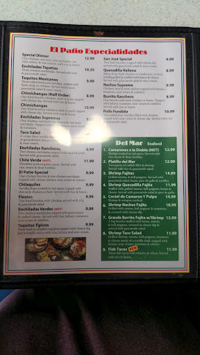 I reminded my family as we entered to get their coats off quickly because we might not have much time before the food arrives...these guys take care of you in no time flat! One guy seats you while another is reaching around the first guy with a basket of tortilla chips and sauce while the next guy is impatiently waiting behind them to get your drink order. As we were reviewing the menus today, two guys ran by, literally racing each other to the back room to get it set up as the first part of a large group was coming in. And while at some places you have to drink strategically to make sure you get your refills when you need them, thats not a concern here since they dont bother to wait to hear you slurping the last droplets before they top you off. The good folks at El Patio seem to have a very good grasp of customer service. This is the only place I go where a tip over 25% is always warranted and earned. We moved to the area last year and have been thrilled to find this restaurant (and its sister in Highland Township) and add it to our regular rotation. The food is very good, very consistent between visits, and youre not going to find many places with better prices for this good a meal. And for those of you with a child who wards you off with the crossed fingers when you mention going to a Mexican restaurant, my daughter gives the chicken tenders two thumbs up (as shes chewing), and the parents are happy since the portions are larger than most places we go. And El Patios best-kept secret is their top-notch desserts. My wife and I have stopped in just for dessert, each enjoyed our own, and left having spent less than six bucks. Next time youre in, make sure you save a little room and try a sopapilla dripping with honey or a flan.
