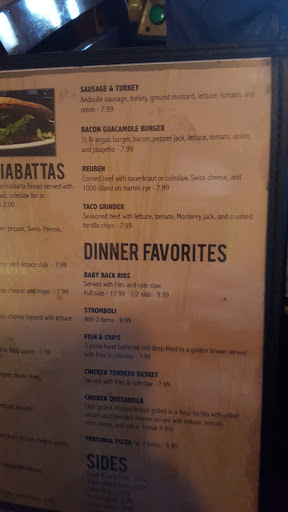 Nothing to do, smelly, decent service, decent daily specials. Overall wouldnt go back. If they had better ventilation and possibly a pool table/foosball. I would consider giving it another shot. Little side note, the waitresses are scuzzy.