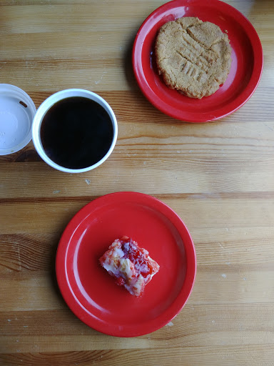Nice cup of coffee, nice people. Pastries, salads, and sandwiches.