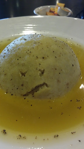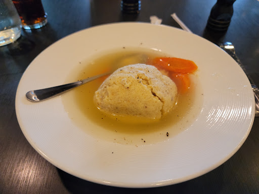 Underwhelming taste. Matzo ball soup was quite plain. Potato salad was not good. The Russian Reuben was okay. The strawberry shake had a lot of ice in it.