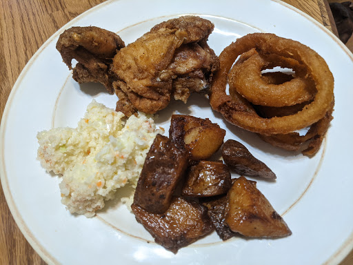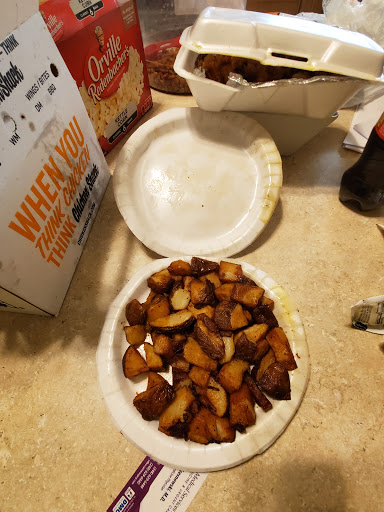 Its Chicken Shack and Little Ceasers together! Chickens great, but a little small in size. Maybe should have let those chickens grow a little more. Not the absolute best, but far far from the worst! Fish is also smaller in size, its cod, but seems like a big smelt. Still great tasting though. Ribs are tasty! portions are normal. For the money, you cant beat this place. Oh, and Little Ceasers is good too! It does seem like the pizza here is slightly better than most other Ceasers though.