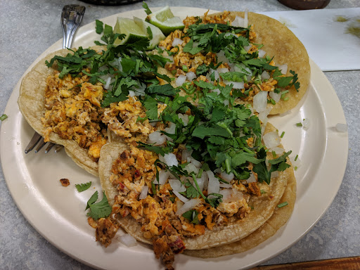 I would never have known this place was there but a friend tool me. Talk about confusingly good. Crispy tacos are the way to go! Odd selection of groceries to boot. Inside isnt much to write home about but the food makes up for that. There is no public restroom, but if you ask nicely they will let you use the one in the kitchen.