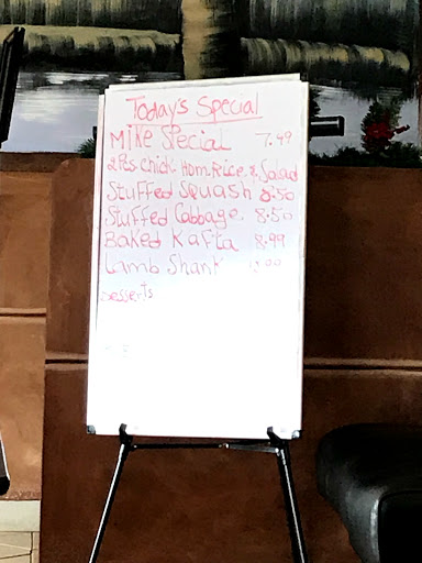 My cousin and I both had the exact same meal(small fattoush salad and a bowl of crushed lentil, this is after I had to send her chicken shawarma back because of the wrap being grilled too long and charred black, and chicken tasted like straight cinnimon) we both got sick later that night. Pretty sure the soup was days old(all liquid and super salty, no chunks at all). But Ive been sick for 3 days now, seems to be food poisoning. When we arrived we were given 4 bags of bread(2 different types, 1 was like paper, tough to chew, and other was a small round roll, also old) but when asked if we would get garlic to dip with she seemed confused and told me no, that Id have to purchase if I wanted. 5 minutes later she brought some over free of charge which was nice of her but that also tasted days old. Falafel was really greasy and also overdone. They were also out of spinach pie. 1St time there with my family and all of us were very dissapointed. Will not be returning.