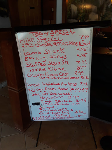 Wide variety of middle eastern and American food served fresh daily. Also have an excellent menu compatible for those on weight loss diets and for vegetarians (GREAT SALADS).