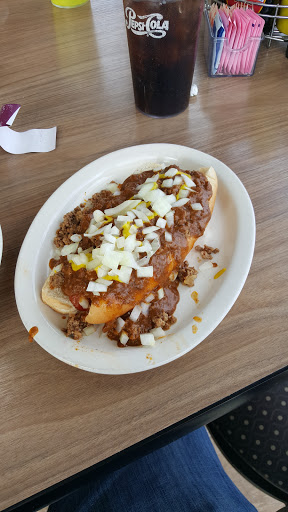 Best hot dogs around! 1 fills a plate! Being used to puny little hot dogs from sonic or coney islands around I ordered 3 The waitress asked if I was sure. When she brought out these huge loaded dogs I realized why! I could barely eat two and Believe me at 300+ lbs I can eat! and the prices are very good. And the hottest waitresses around. and friendly too. I drive a long way to go here. Headed there now!
