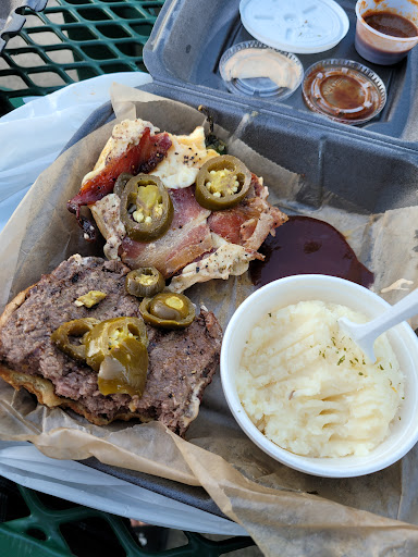 The place looks like a biker bar when you pull up to it but dont let that intimidate you it has a good atmosphere when you walk in the door there is a side to dine like as a family and then the other side where theres a bar or you can order takeout and just pick it up and leave. I got BBQ sandwich which was huge and onion rings and fried pickles it was really good I believe the onion ring and barbecue sandwich basket was like 8 bucks. I did order takeout when I was there I didnt spend a lot of time there maybe 20 minutes but it seems like a very nice place . I was there at about 4 or 5 oclock in the afternoon about early supper time maybe later in the evening they could turn more into a bar atmosphere but there was families dining when I was there.